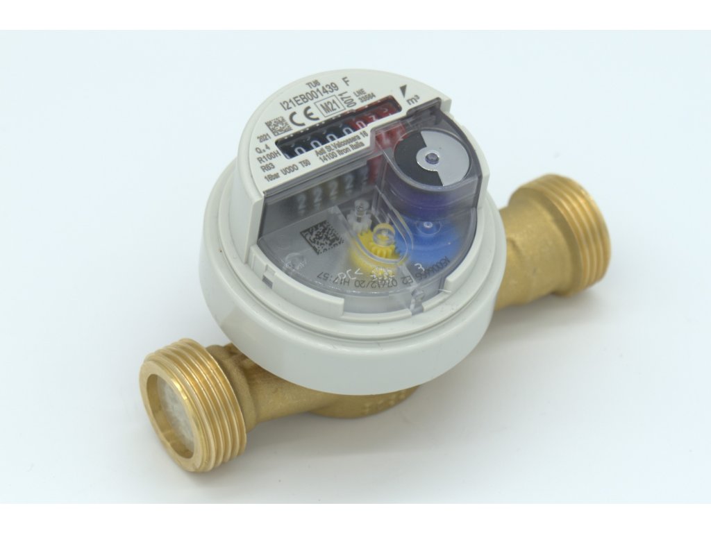Bytový vodomě,r na který lze instalovat komunikační modul. Vodoměr se prodává bez modulu.