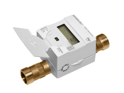 Ultrazvukový vodoměr s digitálním displejem a mosazným tělem, bez mechanických měřících prvků, integrovaná komunikace.
